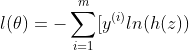 现在我们已经得到了概率模型。此时我们可以通过极大似然的思维方式得到损失函数,即既然已经分类出来了,那么就不满足概率仅仅大于0.5,而是让分到这个类的概率尽可能大,如果我们的训练样本数为m个,那么我们希望m个概率的乘积尽可能大。所以似然函数是,我们需要最大化它。取负号就是最小化它,于是它损失函数就是损失函数:
